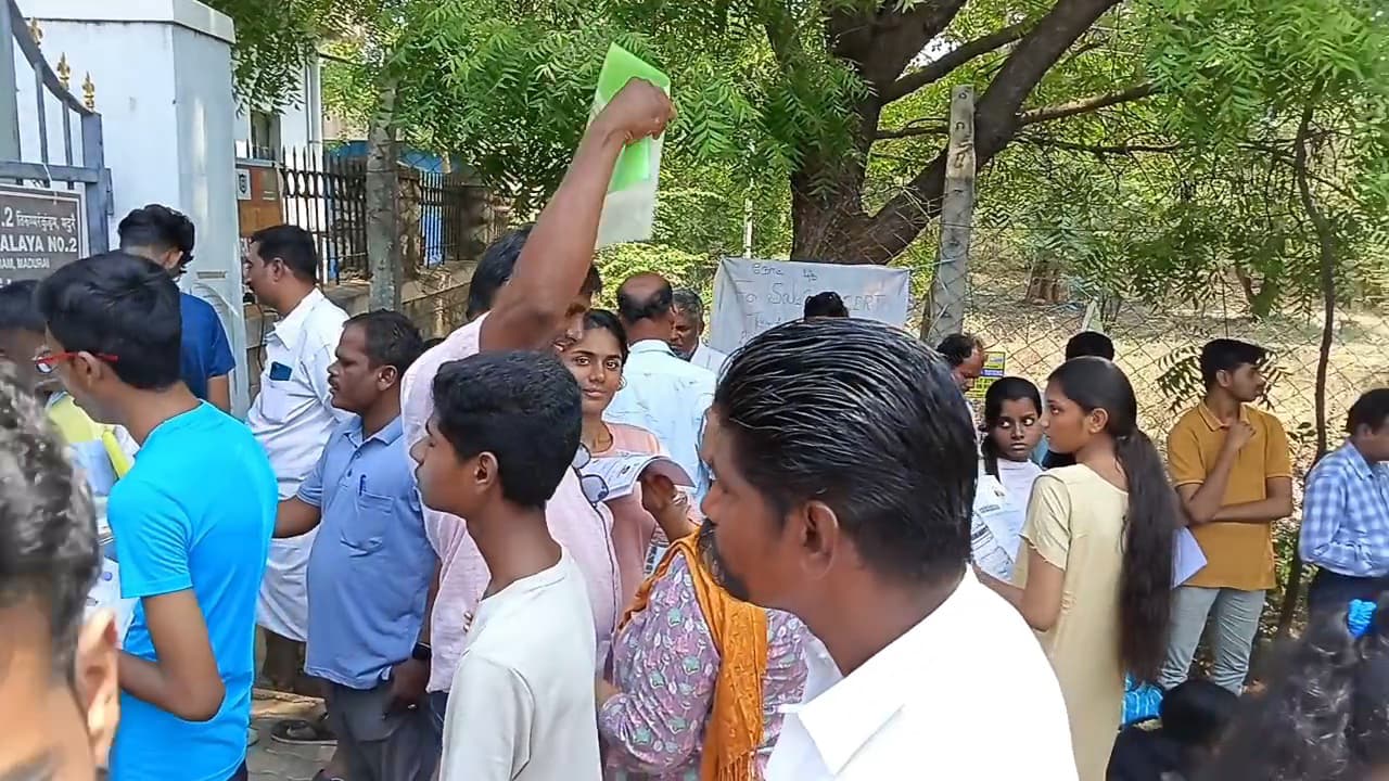 கல்லூரி வளாகத்தில் உள்ளே மாணவர்களை அனுமதிக்ககோரி தேர்வு எழுத வந்த மாணவர்களின் பெற்றோர்கள் அதிகாரிகளுடன் வாக்குவாத்தில் ஈடுபட்டனர்.இதனால் அப்பகுதியில் சலசலப்பு ஏற்பட்டது.