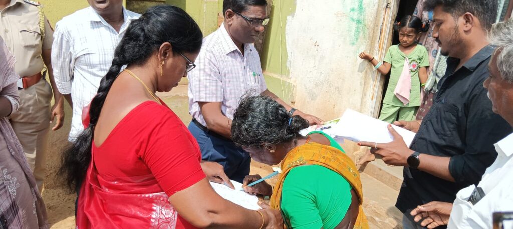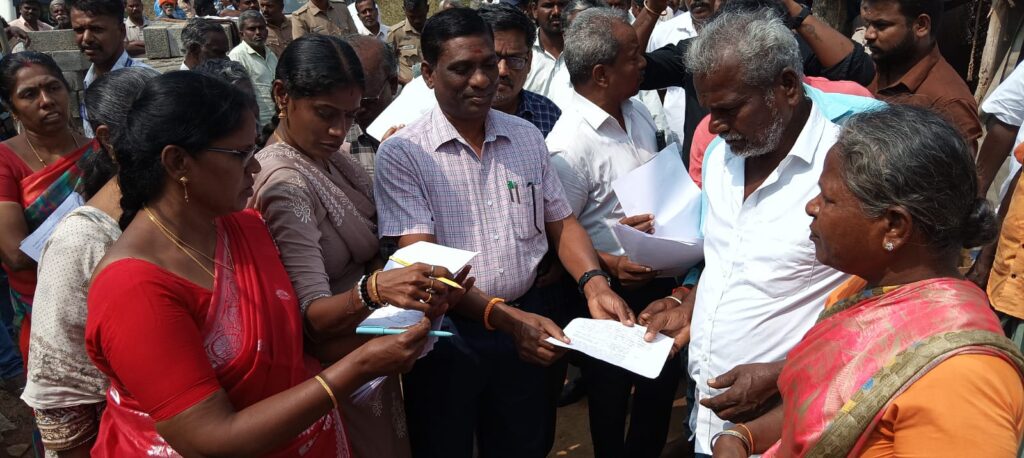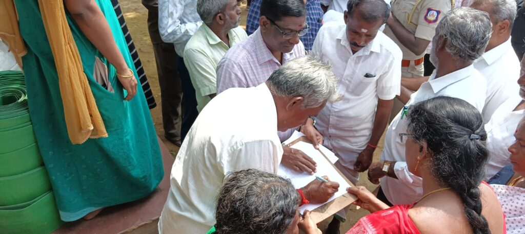 இதற்கு பொதுமக்கள் தரப்பில் 2009 காலகட்டத்தில் ஒரு குடும்பமாக இருந்தது தற்பொழுது 4 குடும்பமாக உள்ளதால் ஒரு குடும்பத்தில் நான்கு பேர் இருப்பதால் நான்கு பேருக்கும் நிலம் வழங்கும் ஆறு கோரிக்கை விருந்தினர் இது தொடர்பாக நீதிமன்றத்தை அணுக வருவாய் துறை அதிகாரிகள் அறிவுறுத்தினர். அதனைத் தொடர்ந்து பொதுமக்கள் கையெழுத்து போட்டு மனுவினை பெற்றுக் கொண்டனர் .