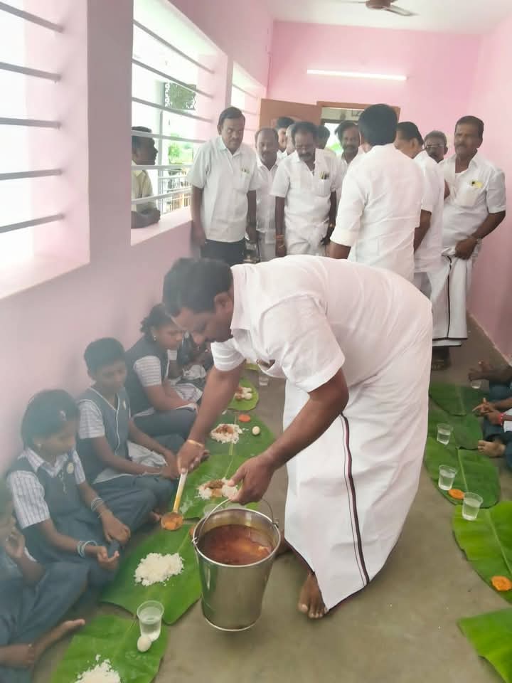 தமிழக முன்னாள் முதலமைச்சர் கலைஞர் கருணாநிதியின் 102 வது பிறந்தநாள் விழாவை முன்னிட்டு வெம்பக்கோட்டையில் உள்ள சிபியோ ஆதரவற்றோர் உண்டு உறைவிடப் பள்ளியில் வெம்பக்கோட்டை திமுக மேற்கு ஒன்றியம்,கிழக்கு ஒன்றியம் ,சார்பில் பள்ளி மாணவ மாணவிகளுக்கு மதிய உணவு வழங்கப்பட்டது. சிறப்பு அழைப்பாளராக விருதுநகர் தெற்கு மாவட்ட விளையாட்டு மேம்பாட்டு அணி அமைப்பாளர் ரமேஷ் கலந்து கொண்டார்.
