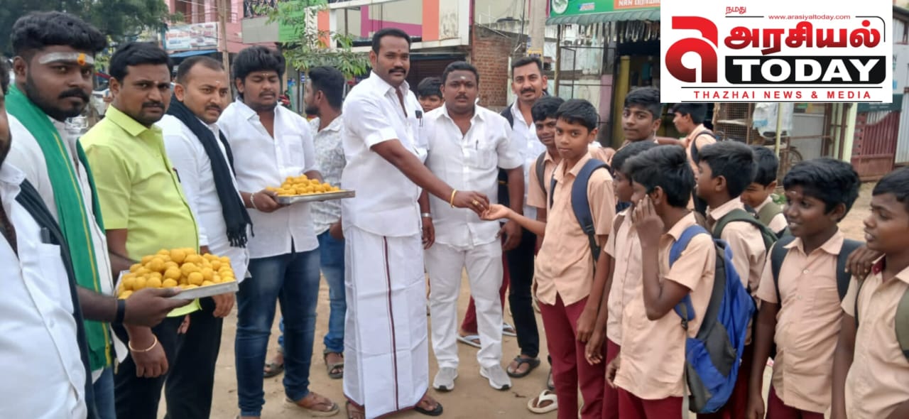உதயநிதி பிறந்த நாளை பள்ளிக் குழந்தைகளுடன் கொண்டாடிய அருள்வாசகன்..