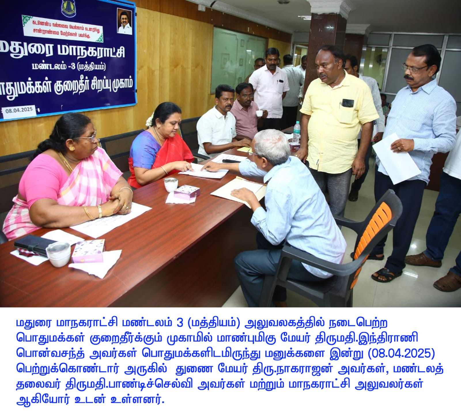 மதுரை மாநகராட்சி மண்டலம் 3 (மத்தியம்) அலுவலகத்தில் பொதுமக்கள் குறைதீர்க்கும் முகாம், மேயர் இந்திராணி பொன்வசந்த் தலைமையில் நடைபெற்றது.
