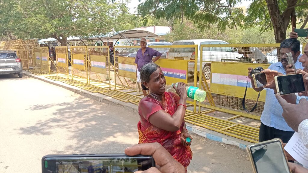 தூத்துக்குடி மாவட்ட ஆட்சியர் அலுவலகத்தில் இன்று காலை மக்கள் குறைதீர்க்கும் நாள் கூட்டம் நடைபெற்றது. அ்ப்போது, வல்லநாடு கீழத்தெரு கோமு மனைவி சரஸ்வதி (55) என்பவர் ஆட்சியர் அலுவலகத்தில் மனுவுடன் வந்தார். அப்போது அவர் திடீரென தான் மறைத்து கொண்டு வந்த பாட்டிலில் இருந்த மண்ணெண்ணெயை தனது உடலில் ஊற்றி தீக்குளிக்க முயன்றார்.
