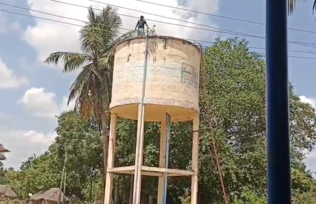 நீர் தேக்க தொட்டியில் ஏறி தற்கொலை முயற்சி..,
