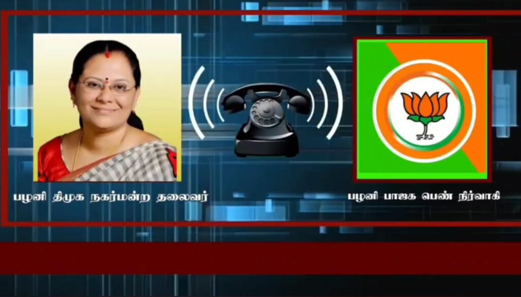 திமுகவை சேர்ந்த பழனி நகர மன்ற தலைவி உமாமகேஷ்வரி. இவர் நகர்மன்ற உறுப்பினராக வெற்றி பெற்ற 23வது வார்டு பகுதியை சேர்ந்த பரமேஸ்வரி என்ற பாஜக நிர்வாகி ஒருவர் அப்பகுதியில் உள்ள பெண்களை ஒன்றினைத்து மகளிர் சுய உதவிக் குழு அமைத்து வங்கியில் கடன் வாங்கித்தர உதவி செய்து உள்ளார். இதுகுறித்த தகவலறிந்த 23வது வார்டு திமுக கவுன்சிலரும், நகர்மன்ற தலைவருமான உமா மகேஸ்வரி கடும் எரிச்சல் அடைந்து, சம்மந்தப்பட்ட பாஜக பெண் நிர்வாகியை தொலைபேசியில் அழைத்து கடுமையாக மிரட்டும் ஆடியோ தற்போது வைரல் ஆகியுள்ளது.