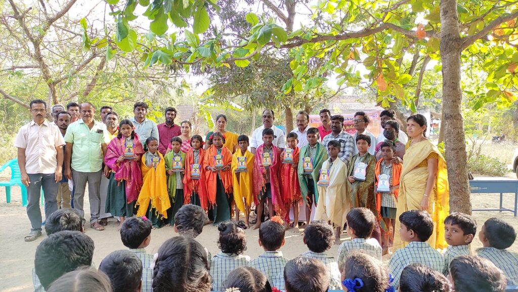 சென்ற ஆண்டு இதே பள்ளியில் பகவான் அறக்கட்டளை சார்பாக 73 பள்ளி மாணவர்களுக்கு மரக்கன்றுகளும் எழுது பொருளும் வழங்கப்பட்டது. இதில் சிறப்பாக மரம் வளர்த்த 12 மாணவ மாணவிகளை தேர்வு செய்து பசுமை தங்கம் என்ற விருதை மாணவ மாணவிகளுக்கு வழங்கி பொன்னாடை போர்த்தி கௌரவ படுத்தப்பட்டார்கள். அதேபோல் இந்த ஆண்டும் 66 மாணவ மாணவிகளுக்கு மரக்கன்றுகளும் நோட்டு எழுதுகோலும் சேமிப்பு பழக்கத்தை உருவாக்கும் வண்ணம் உண்டியலும் அதில் நாணயங்களும் வழங்கப்பட்டது.