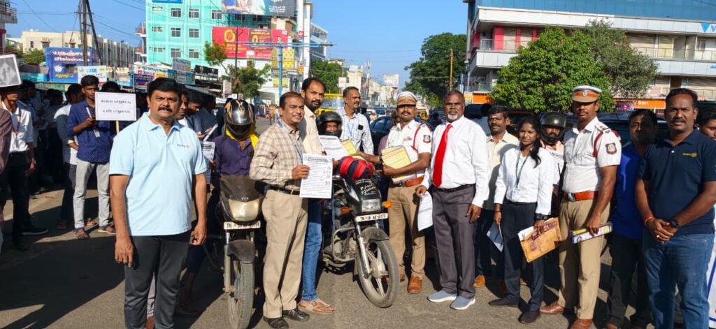 இதில் அண்ணா பல்கலை கழக பேராசிரியர் முத்துவேலாயுதம் மற்றும் சார்பு ஆய்வாளர் சந்தனகுமார் ஆகியோர்கள் கலந்து கொண்டனர்.. வாகன ஓட்டிகளுக்கு சாலை விதிகள் மற்றும் சாலை பாதுகாப்பாக வாகனம் ஓட்டுவது குறித்து விழிப்புணர் துண்டு பிரசுரங்கள் வழங்கி விழிப்புணர்வை ஏற்படுத்தினர்