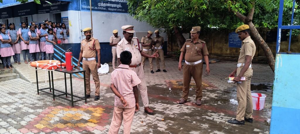 விருதுநகர் மாவட்டம் சிவகாசி அருகே உள்ள ஏழாயிரம் பண்ணை தீயணைப்பு நிலையம் சார்பில் தீயணைப்பு நிலைய அலுவலர் மாரியப்பன் தலைமையில் முத்தாண்டிபுரம் அரசு மேல்நிலைப் பள்ளியில் படிக்கும் மாணவ மாணவியர்களிடம் விபத்து இல்லாத தீபாவளி கொண்டாடுவதற்காக விழிப்புணர்வை ஏற்படுத்தும் வகையில் பட்டாசுகளை பாதுகாப்பாக வெடிப்பது குறித்து செயல் விளக்கம் அளிக்கப்பட்டது.
