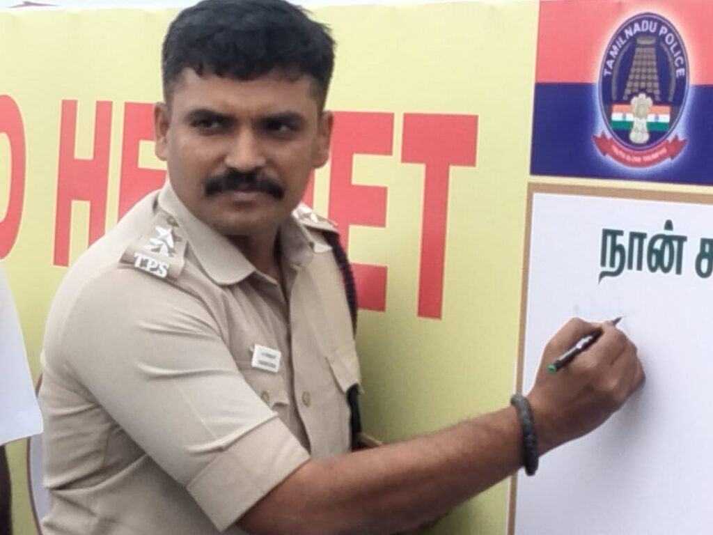 தலைகவசம் அணிவோம் விழிப்புணர்வு ஊர்வலம் உறுதிமொழி கையெழுத்து.