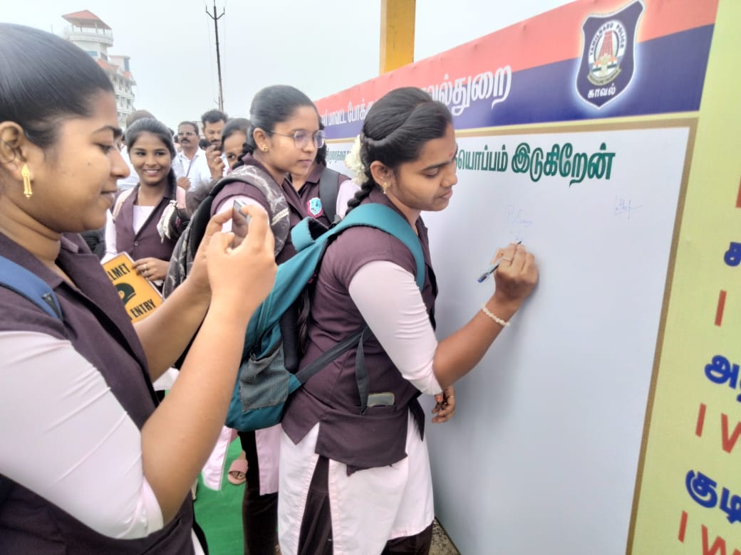 விழிப்புணர்வு ஊர்வலம் தொடங்குவதற்கு முன்.நான் எப்போதும் சாலை விதிகளை கடைபிடிப்பேன் என உறுதி எடுத்து பொதுப்பலகையில் நிகழ்வில் பங்கேற்ற அனைவரும் கையெழுத்து இட்டார்கள்.