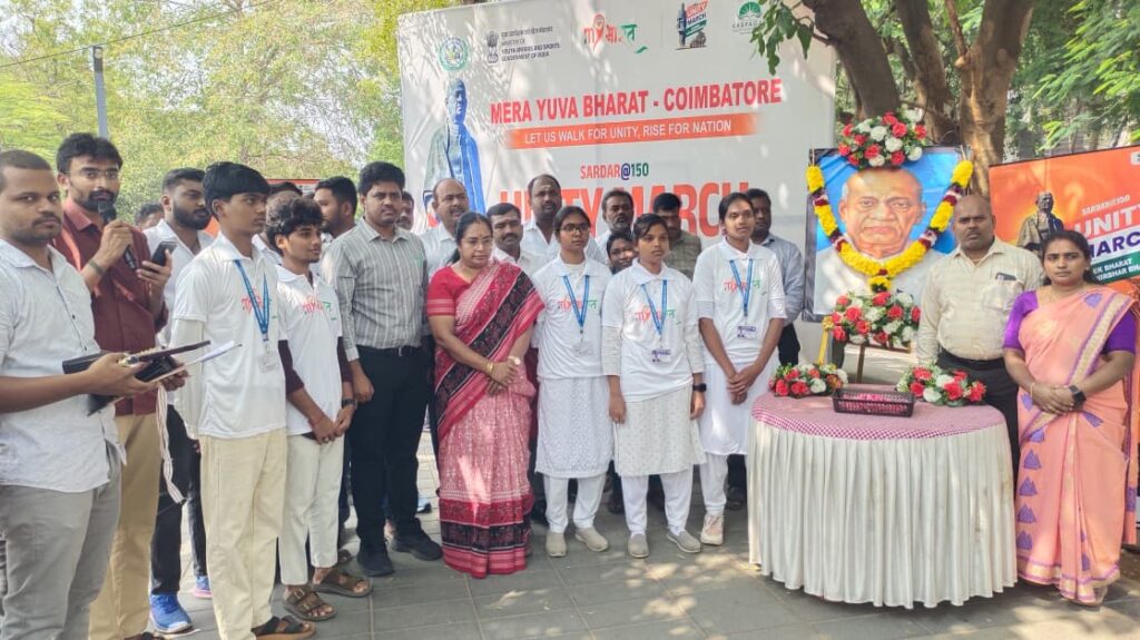 மத்திய இளைஞர் விவகாரங்கள் மற்றும் விளையாட்டு துறையின் கீழ் இயங்கும் மேரா யுவா பாரத் Mera Yuva Bharat – கோயம்புத்தூர் அலுவலகத்தின் சார்பில் இரும்பு மனிதர் சர்தார் வல்லபாய் பட்டேலின் 150ஆவது பிறந்த ஆண்டை முன்னிட்டு Unity March எனும் ஒற்றுமை பேரணி கோவை ரேஸ்கோர்ஸ் பகுதியில் இன்று நடைபெற்றது.