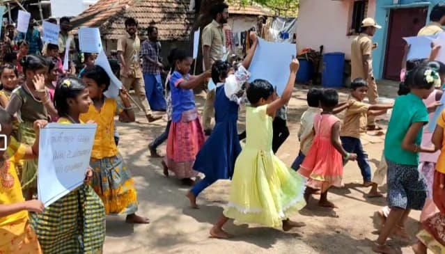 உலக தண்ணீர் தினத்தை முன்னிட்டு மழை நீர் சேகரிப்பு குறித்து கையில் பதாகைகளை ஏந்தி ஊர்வலமாக சென்று கிராம பொது மக்களுக்கு விழிப்புணர்வு ஏற்படுத்த பேரணி நடத்தினர்.