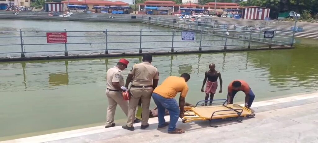 இங்குள்ள நளத்தீர்த்த குளத்தை கோவில் நிர்வாகம் வாரம் தோறும் சுத்தம் செய்து தண்ணீரை மாற்றி பக்தர்கள் குளிப்பதற்கு ஏதுவாக சரி செய்து வருகின்றனர். இந்நிலையில் இன்று காலை திருநள்ளாறு பகுதியில் யாசகம் பெற்று வந்த 50 வயது மதிக்கத்தக்க நபர் ஒருவர் குளத்தில் குளிப்பதற்காக சென்றபோது படிகளில் இருந்த பாசி வழுக்கி குளத்தில் விழுந்து பரிதாபமாக உயிரிழந்தார்.