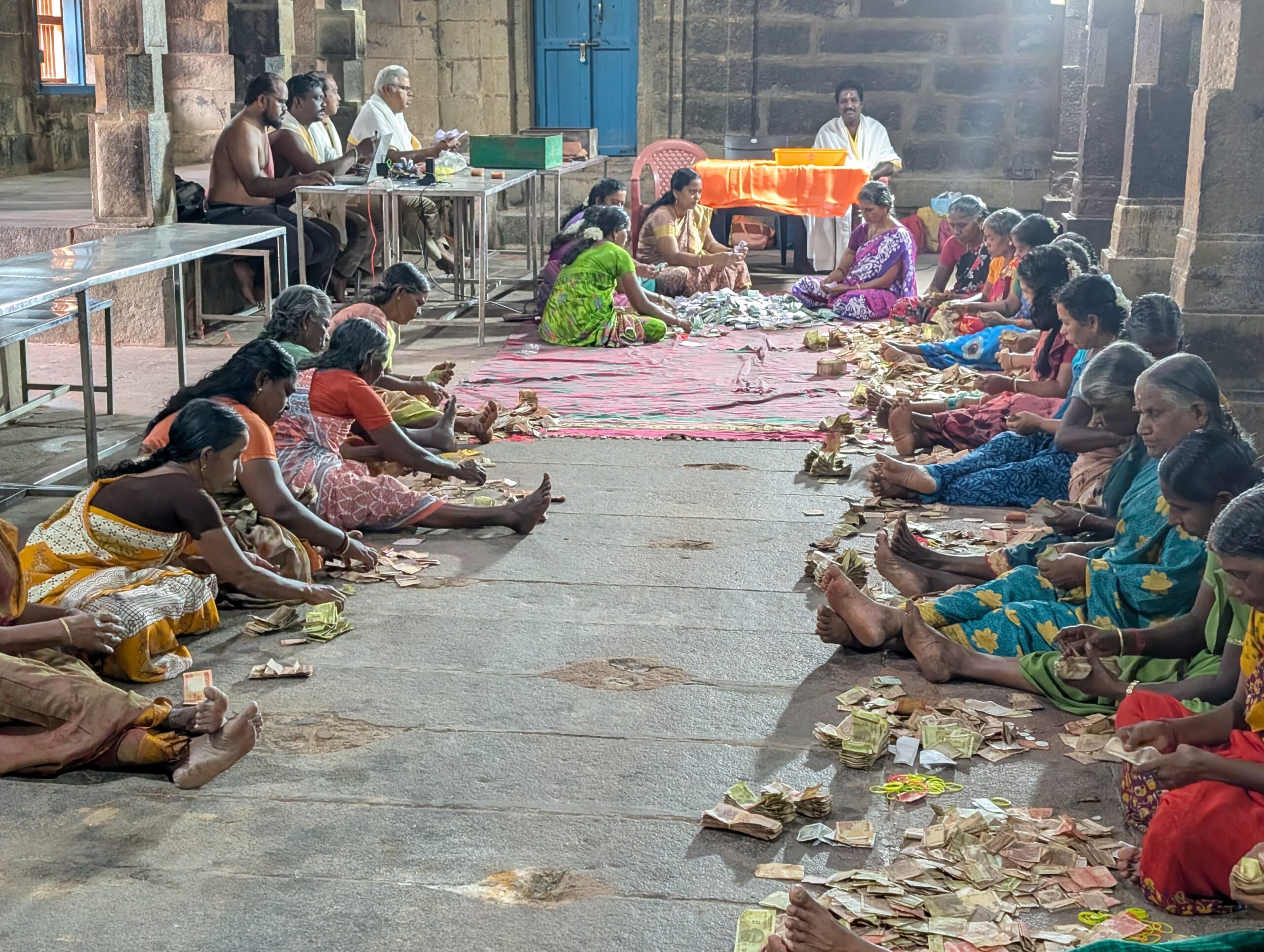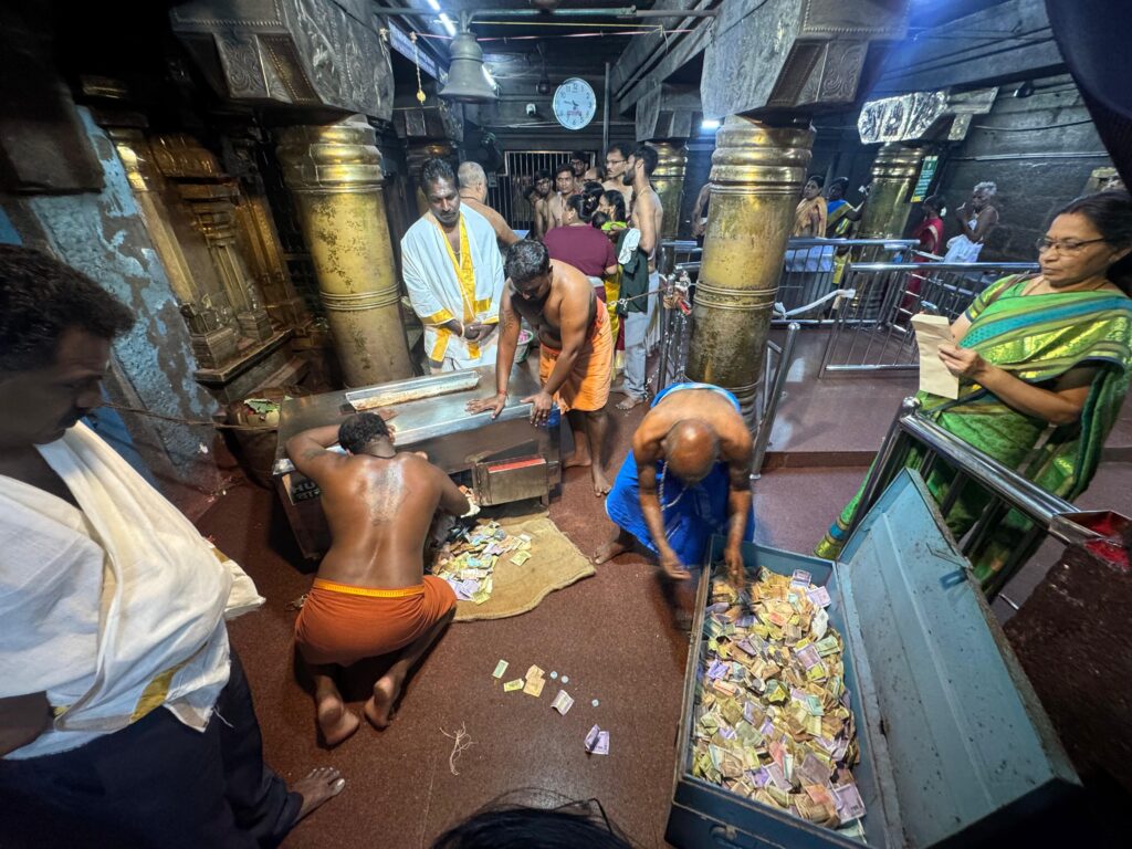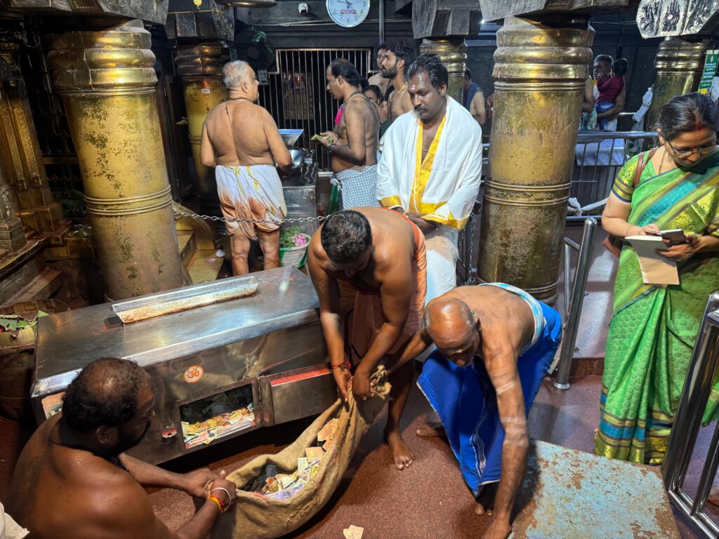 உண்டியல் பணம் எண்ணும் பணியில் தன்னார்வலர்கள் 100_க்கும் அதிகமானவர்கள். உண்டியல் காணிக்கையை எண்ணும் பணியில் ஈடுபட்டுள்ளார்கள். இன்று மாலை காணிக்கை பணம், வெள்ளி, தங்கம் பற்றிய தகவல்கள் தெரியவரும்.