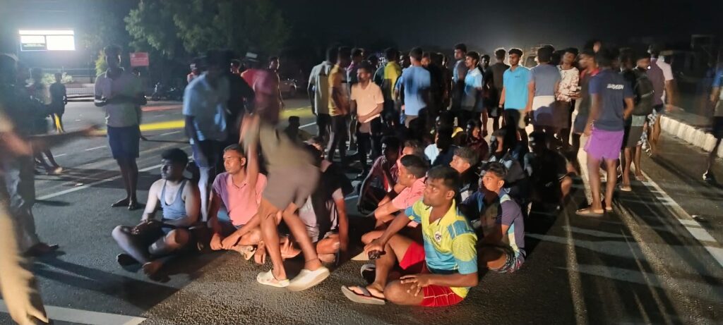 பாதிக்கப்பட்ட மாணவர்கள் மற்றும் அவர்களது நண்பர்கள் எதிரிகள் மூவரையும் போலீசார் கைது செய்ய வேண்டி பல்கலைக்கழகம் முன்பு திருச்சி புதுக்கோட்டை சாலையில் நேற்று இரவு சாலை மறியல் செய்தனர். சம்பவ இடத்திற்கு நவல்பட்டு போலீசார் விரைந்து சென்று மாணவர்களிடம் எதிரிகளைப் பிடித்து நடவடிக்கை எடுப்பதாக வாக்குறுதி அளித்ததை அடுத்து மாணவர்கள் கலைந்து சென்றனர். மாணவர்களை தாக்கிவிட்டு தப்பி சென்ற மூன்று நபர்களை போலீசார் தீவிரமாக தேடி வருகின்றனர்.