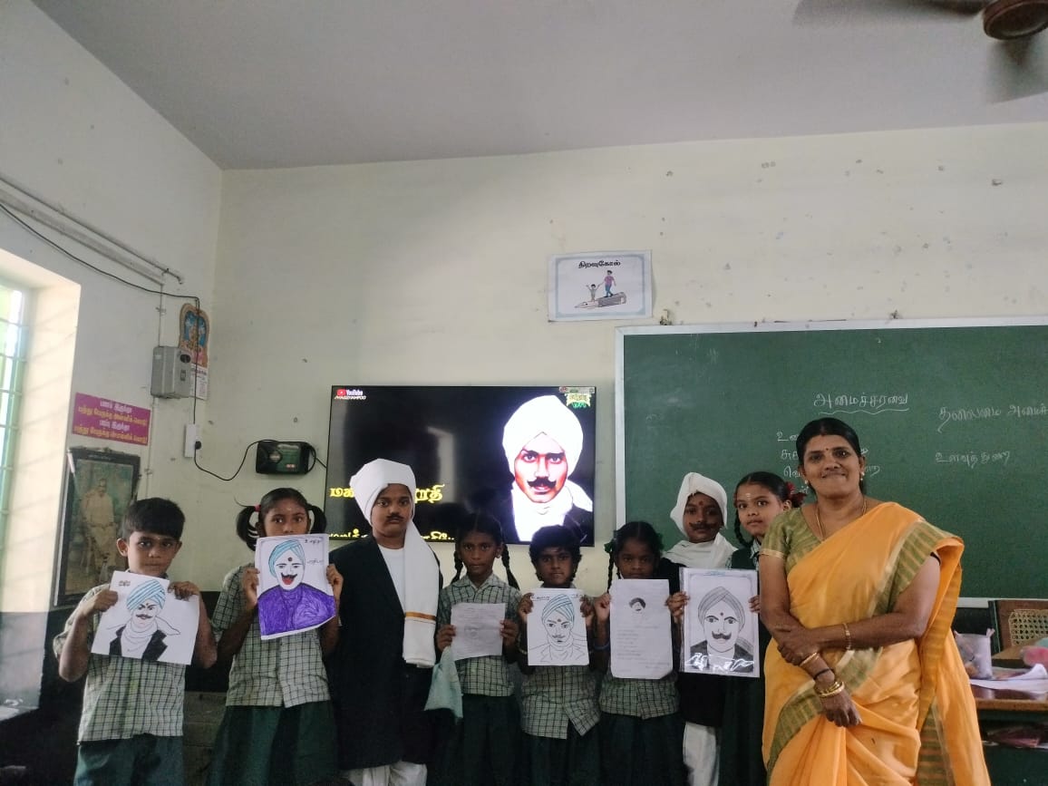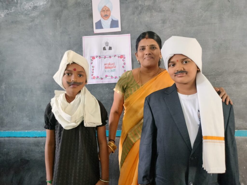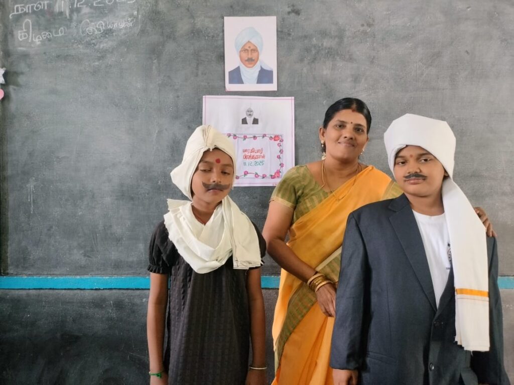 ஊராட்சி.ஒன்றிய.தொடக்க.பள்ளி, க.மடத்துப் பட்டியில் பாரதியின் பிறந்த நாள் கொண்டாடப்பட்டது. தலைமையாசிரியர் பத்மாவதி பாரதி வேடமணிந்து வந்த மாணவிகள் விபிக்‌ஷா,ஷிவானியைப் பாராட்டினார்.