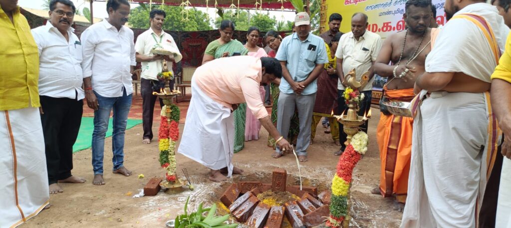 இந்த நிகழ்ச்சியில் சிறப்பு விருந்தினராக கலந்து கொண்ட ஸ்ரீரங்கம் சட்டமன்ற தொகுதி உறுப்பினர் பழனியாண்டி அவர்கள் குத்துவிளக்கேற்றி பூமி பூஜைக்கு முதல் செங்கல்லை எடுத்து வைத்தார்.