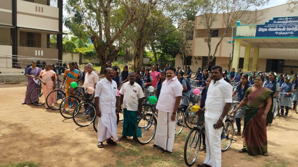 தஞ்சாவூர் மாவட்டம் ஒரத்தநாடு அரசு பெண்கள் மேல்நிலைப் பள்ளியில் பயின்று வரும் 200-க்கும் மேற்பட்ட மாணவிகளுக்கு முதல் கட்டமாக 45 மாணவர்களுக்கு தமிழ்நாடு அரசு வழங்கும் இலவச சைக்கிளை பள்ளியின் பெற்றோர் ஆசிரியர் கழகத் தலைவர் முகமது கனி தலைமையில் வழங்கப்பட்டது.