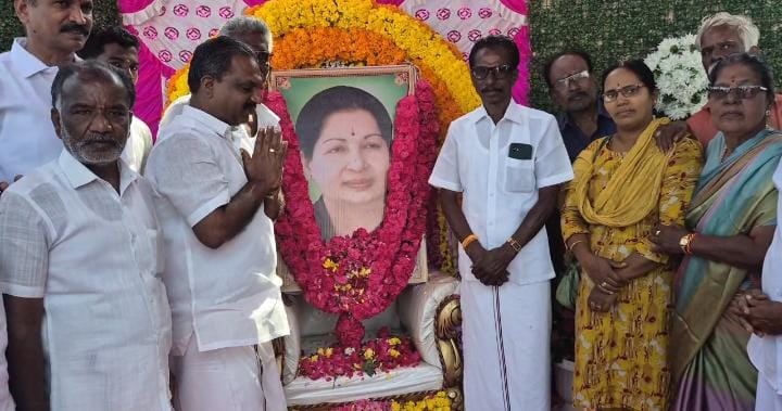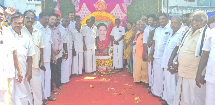 தமிழகத்தின் முன்னாள் முதலமைச்சர் மறைந்த ஜெயலலிதா அவர்களின் 78-வது பிறந்தநாளை காரைக்காலில் அஇஅதிமுகவினர் உற்சாகமாக கொண்டாடினார்கள். புதிய பேருந்து நிலையம் அருகில் அஇஅதிமுக மாவட்ட செயலாளர் எம்.வி.ஓமலிங்கம் தலைமையில் நடைபெற்ற நிகழ்ச்சியில் அம்மாவின் திருவுருவ படத்திற்கு மாலை அணிவித்து மலர் தூவி மரியாதை செலுத்தப்பட்டது.