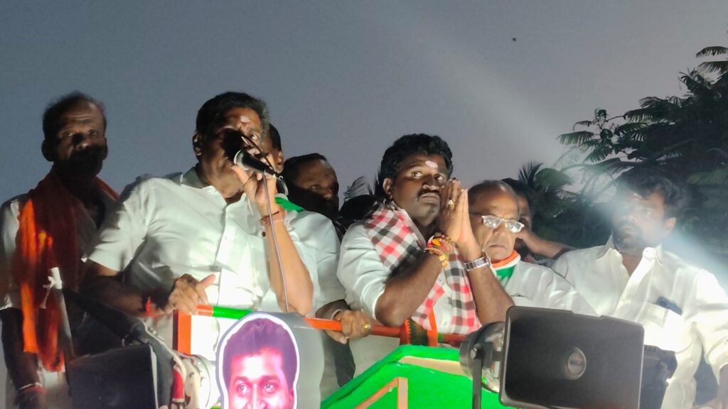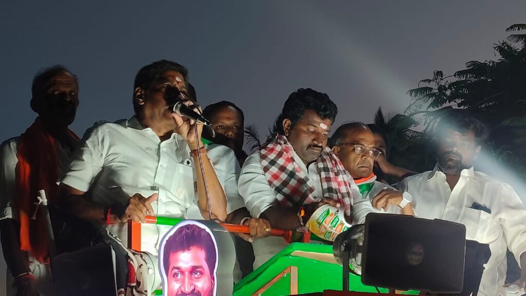 ஆனால் ராமச்சந்திரன் வெற்றி பெற்று சட்டமன்றத்திற்கு போகும் போது குரல் ஓங்கி ஒலிக்கும் புதுக்கோட்டை மக்களுக்காக. இங்குள்ள மருத்துவ கல்லூரி முதல் பள்ளிகளின் வளர்ச்சி வரை செய்தது அதிமுக அரசு. இங்குள்ள திருவப்பூர் முத்துமாரியம்மன் கோவிலுக்கு தங்கத்தேர் தந்ததும் அதிமுக அரசுதான். மீண்டும் எடப்பாடி யார் தலைமையில் ஆட்சிக்கு வரும்போது இன்னும் நிறைய செய்வோம் என்று பேசினார். இவர்களது பேச்சைக் கேட்க அதிமுக பாஜக தொண்டர்கள் ஏராளமான குழுமியிருந்தனர்.