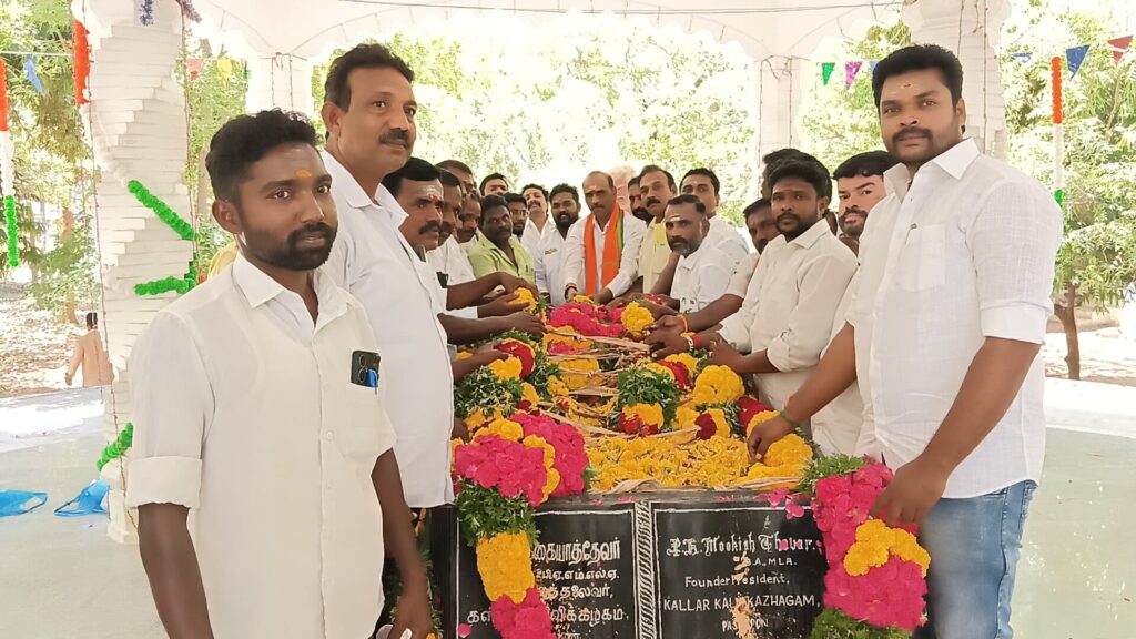 பி.கே.மூக்கைத்தேவரின் 102 வது பிறந்தநாளை முன்னிட்டு மதுரை மாவட்டம் உசிலம்பட்டி பசும்பொன் முத்துராமலிங்க தேவர் கல்லூரி வளாகத்தில் உள்ள அவரது நினைவிடத்தில் பாஜக மதுரை பெருங்கோட்ட பொறுப்பாளர் காதலி நரசிங்கபெருமாள் தலைமையிலான பாஜக நிர்வாகிகள் மாலை அணிவித்து மரியாதை செலுத்தினர்.