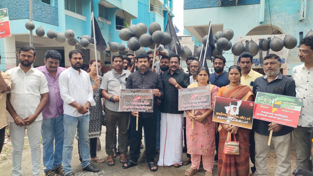 தி.மு.க ஆட்சியில் ஊழல் இல்லாத துறைகளே இல்லை, படுகொலை நடக்காத நாளே இல்லை, தினசரி பாலியல் குற்றங்கள் அதிகரித்து வருகிறது, குடிநீரை கோட்டை விட்டு தமிழக மக்களை குடிகாரர்களாக்கி விட்டார்கள்., தி.மு.க ஆட்சியில், தமிழகம் முழுவதும் சட்டம் ஒழுங்கு சீர்குலைந்து விட்டது என கோவை மாநகர முழுவதும் உள்ள பா.ஜ.க வினர் தங்கள் வீடுகளில் கருப்பு கொடி ஏற்றி போராட்டத்தில் ஈடுபட்டு வருகின்றனர்.