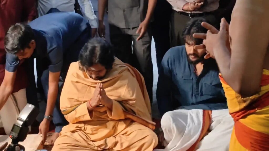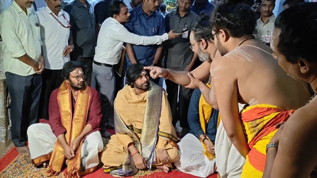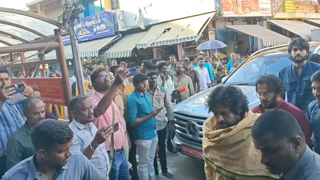 திருப்பரங்குன்றம் கோவிலில் சாமி தரிசனம் செய்ய வந்த பவன் கல்யாணத்துக்கு திருப்பரங்குன்றம் கந்த குரு வேத பாடசாலையில் வேதங்கள் முழங்க ஆசீர்வாதம் செய்யப்பட்டது.