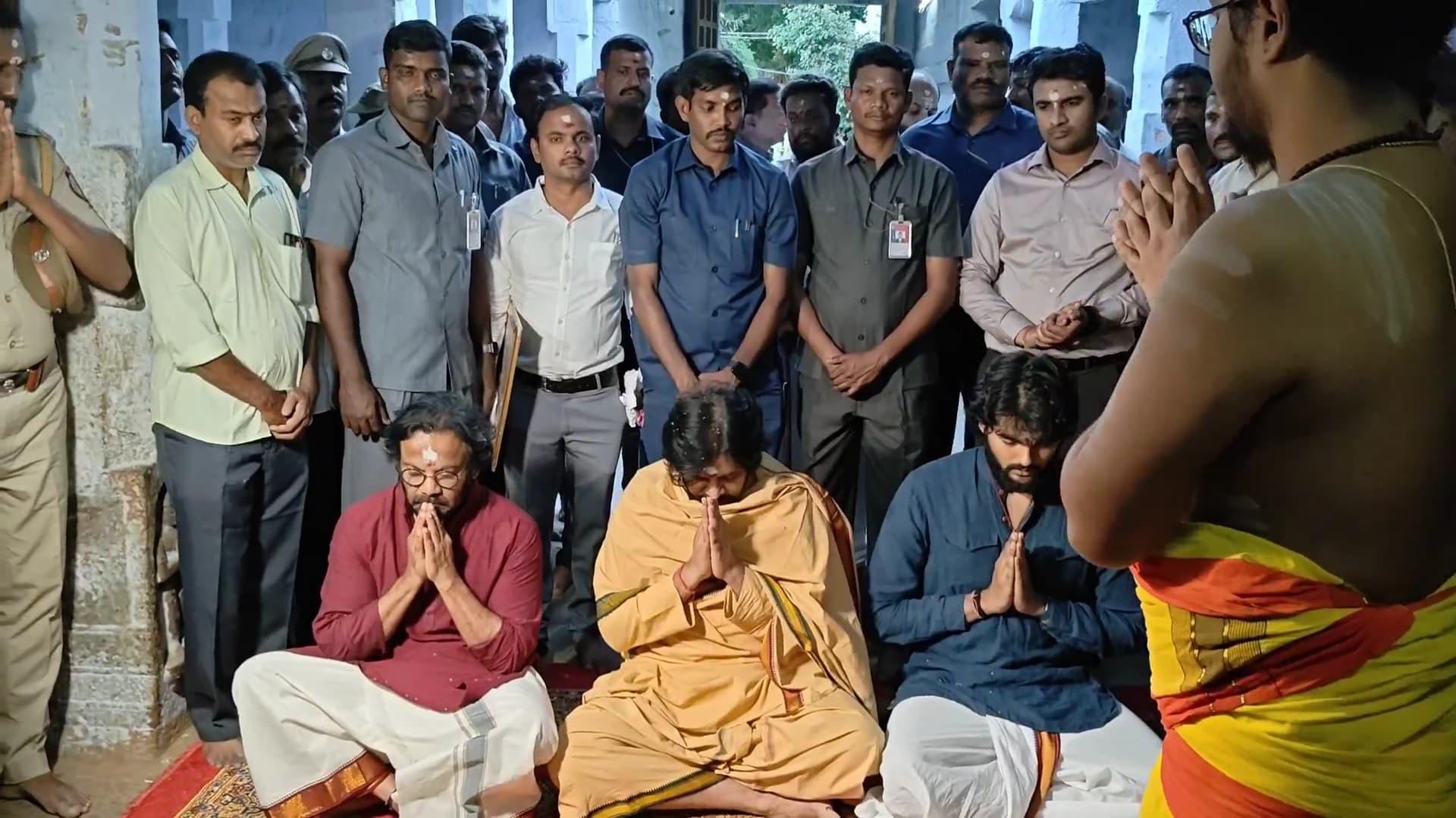 திருப்பரங்குன்றம் கோவிலில் சாமி தரிசனம் செய்ய வந்த பவன் கல்யாணத்துக்கு திருப்பரங்குன்றம் கந்த குரு வேத பாடசாலையில் வேதங்கள் முழங்க ஆசீர்வாதம் செய்யப்பட்டது.