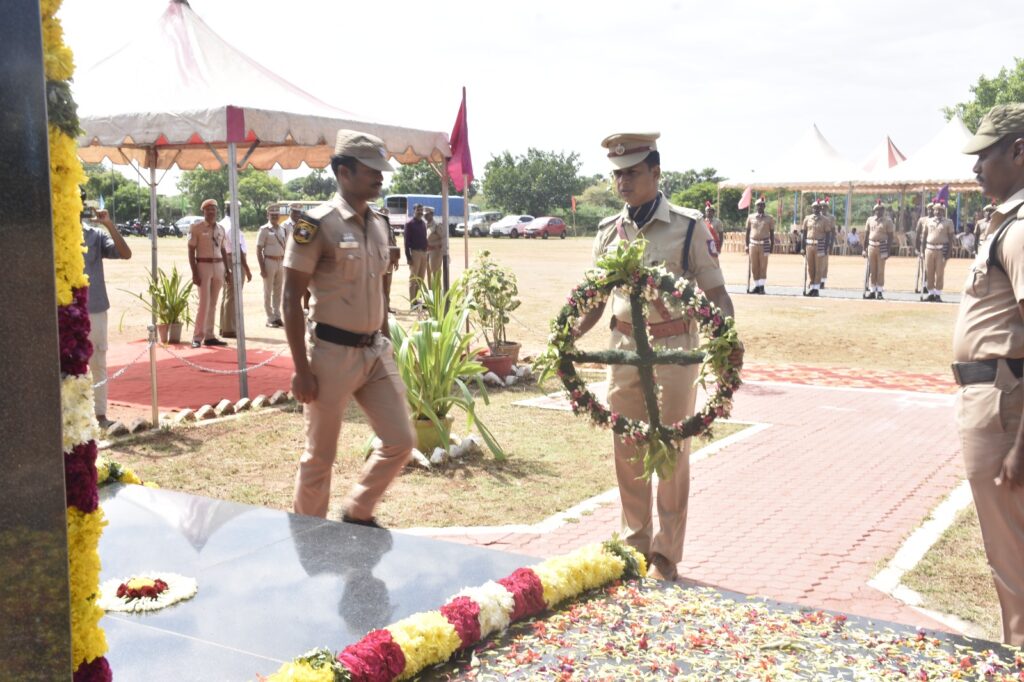 தொடர்ந்து மாவட்ட‌ காவல் கண்காணிப்பாளர் விஷ்வேஷ் பா.சாஸ்திரி மாவட்ட ஆயுதப்படை மைதானத்தில், காவல் துறையில் பணிபுரிந்து உயிரிழந்தவர்களின் நினைவாக உள்ள நீத்தார் நினைவுச் சின்னத்தில் மலர் வளையம் வைத்து அஞ்சலி செலுத்தினார். அவரைத் தொடர்ந்து அரியலூர் மாவட்ட காவல் கூடுதல் கண்காணி ப்பாளர் முத்தமிழ் செல்வன், காவல்துறை கண்காணிப்பாளர்கள்