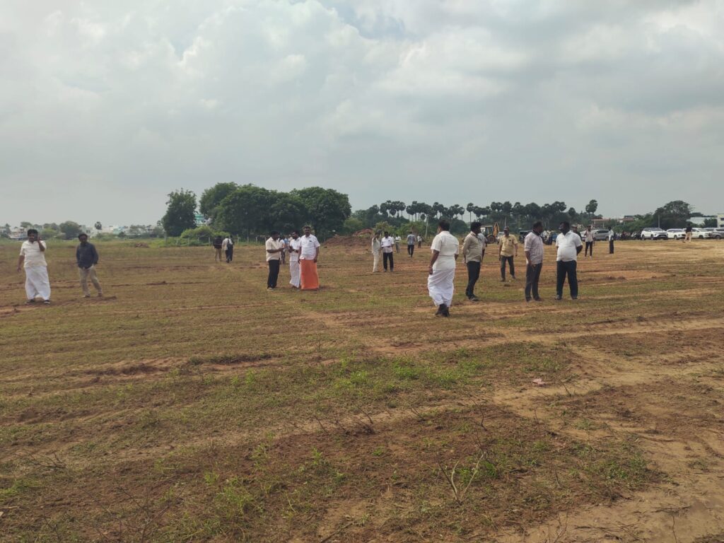 திருச்சி புதுக்கோட்டை தேசிய நெடுஞ்சாலையில் பாலன் நகர் அருகே பள்ளத்திவயலில் தனியாருக்கு சொந்தமான 59 ஏக்கர் பரப்பளவிலான இடம் தேர்வு செய்யப்பட்டு அந்த இடம் இன்று தூய்மைப்படுத்தும் பணி நடைபெற்று வருகிறது.