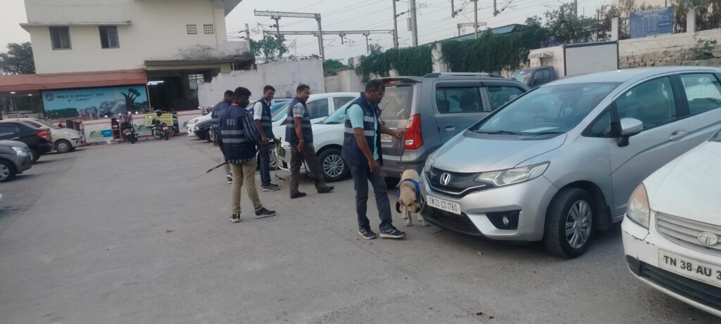 வெடிகுண்டு தடுப்பு பிரிவு போலீசார் தீவிர சோதனை..,