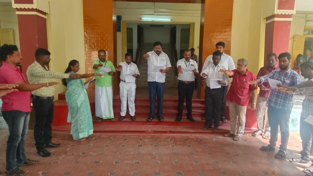 ஸ்ரீவில்லிபுத்தூர் நகராட்சி அலுவலகத்தில் நகர் மன்ற தலைவர் தங்கம் ரவி கண்ணன் தலைமையில் கொத்தடிமை தொழிலாளர்கள் ஒழிப்பு உறுதிமொழி நடைபெற்றது. இதில் நகராட்சி ஆணையாளர் பிச்சை மணி, பொறியாளர் கோமதி சங்கர், சுகாதார அலுவலர் கந்தசாமி, நகரமைப்பு அலுவலர் வெங்கடேசன் உட்பட நகராட்சி ஊழியர்கள் கலந்து கொண்டு உறுதிமொழி எடுத்து கொண்டனர்.
