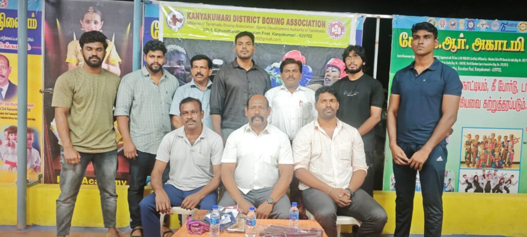 குத்துச்சண்டை சங்க புதிய நிர்வாகிகள் தேர்வு கன்னியாகுமரி மாவட்ட குத்துச்சண்டை சங்க செயற்குழு கூட்டம் மற்றும் புதிய நிர்வாகிகள் தேர்வு பஞ்சலிங்கபுரம் கே.கே.ஆர். அகாடமி அலுவலகத்தில் வைத்து நடைபெற்றது. இக்கூட்டத்துக்கு மாவட்ட குத்துச்சண்டை சங்க செயலாளர் கே.கே.ஹெச்.ராஜ் தலைமை வகித்தார்.