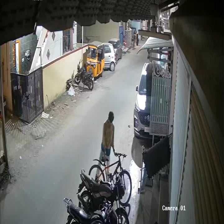இந்த திருட்டுச் சம்பவமும் அந்த வீட்டின் முன்பிருந்த சி.சி.டி.வி (CCTV) கேமராவில் மிகத் தெளிவாகப் பதிவாகி உள்ளது.