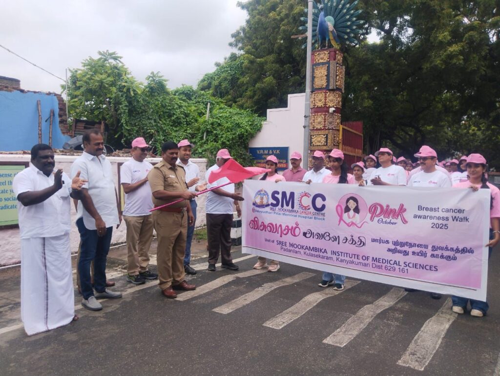 கன்னியாகுமரியில் மார்பகப் புற்றுநோய் தொடர்பான விழிப்புணர்வு ஊர்வலம் நடைபெற்றது.