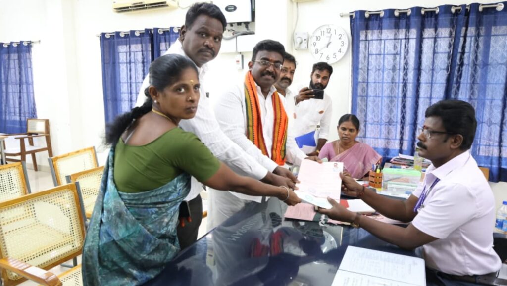 சேவலுடன் வேட்புமனு தாக்கல் செய்ய வந்த வேட்பாளர் ப.குணாவால் பரபரப்பு..,