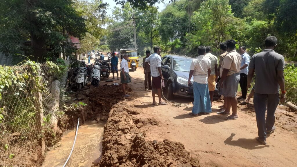 காரில் கயிறை கட்டி பள்ளத்தில் இருந்து மேலே இழுக்க முயற்சி செய்தனர். சுமார் ஒரு மணி நேரத்திற்கும் மேலாக காரை மீட்க முடியாததால் அந்தப் பகுதியில் போக்குவரத்து பாதிப்பு ஏற்பட்டது. மேலும் குடிநீரும் பள்ளங்களிலிருந்து வீணாக சாலைகளில் சென்று வருகிறது. இது குறித்து பொதுமக்கள் அதிகாரிகளிடம் ஒரு வாரத்திற்கும் மேலாக புகார் தெரிவித்தும் எந்த நடவடிக்கையும் எடுக்கவில்லை என கூறுகின்றனர். ஆகையால் பொதுமக்களின் நலன் கருதி அலங்காநல்லூரின் பல்வேறு பகுதிகளில் குடிநீர் குழாய் பதிப்பதற்காக தோன்டிய பள்ளங்களை உடனடியாக மூட வேண்டும் என சமூக ஆர்வலர்கள் கோரிக்கை விடுத்துள்ளனர். அசம்பாவிதங்கள் ஏற்படும் முன் நடவடிக்கை எடுக்கவும் வேண்டுகோள் விடுத்துள்ளனர்.