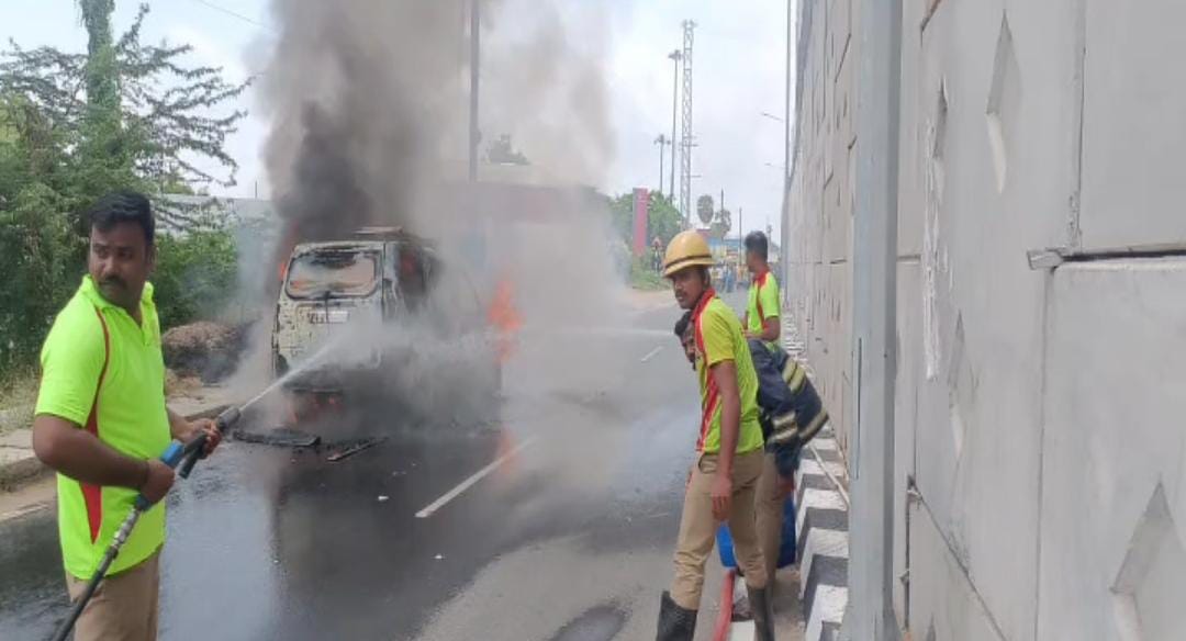 கரூர் மாநகராட்சிக்கு உட்பட்ட பெரியகுளத்துப்பாளையம் ஜாமியா நகரை சார்ந்தவர் நாவீத் அஹ்மத். இவரது ஜைலோ காரை சர்வீஸ் விடுவதற்கு சேலம் பைபாஸில் உள்ள தனியார் சர்வீஸ் செண்டருக்கு சென்றுள்ளார். அப்போது, நாவீத் அஹ்மத்தும், மெக்கானிக்கும் சேர்ந்து காரை ஓட்டிப் பார்க்க சர்வீஸ் சாலையில் சென்று கொண்டிருந்தனர். ராம் நகர் பிரிவு அருகே சென்ற போது காரின் முன் பகுதியில் இருந்து புகை வருவதை பார்த்த அவர்கள் காரை விட்டு கீழே இறங்கி விட்டனர்.