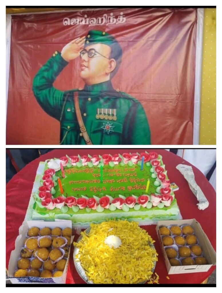 தொடர்ந்து நேதாஜியின் கொள்கைகளை முன்னெடுப்போம், வாழ்க வாழ்கவே நேதாஜி புகழ் வாழ்கவே, ஜெய்ஹிந்த் என முழக்கமிட்டு பிறந்தநாளை கொண்டாடினர்.