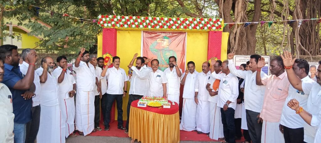 இந்நிலையில் இதன் ஒரு பகுதியாக மதுரை மாவட்டம் உசிலம்பட்டி நீதிமன்ற வளாகம் அருகில் அகில இந்திய பார்வர்டு பிளாக் கட்சியினர் மற்றும் வழக்கறிஞர்கள் சார்பில் நேதாஜி சுபாஷ் சந்திர போஸ் 129 வது பிறந்த நாளை முன்னிட்டு கேக் வெட்டியும் பொதுமக்களுக்கு இனிப்பு வழங்கி கொண்டாடினர்.,