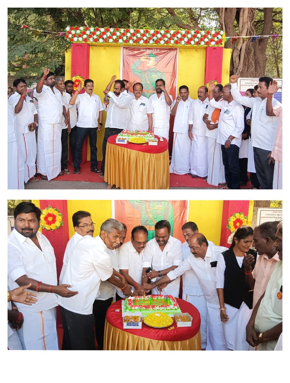 இந்நிலையில் இதன் ஒரு பகுதியாக மதுரை மாவட்டம் உசிலம்பட்டி நீதிமன்ற வளாகம் அருகில் அகில இந்திய பார்வர்டு பிளாக் கட்சியினர் மற்றும் வழக்கறிஞர்கள் சார்பில் நேதாஜி சுபாஷ் சந்திர போஸ் 129 வது பிறந்த நாளை முன்னிட்டு கேக் வெட்டியும் பொதுமக்களுக்கு இனிப்பு வழங்கி கொண்டாடினர்.,
