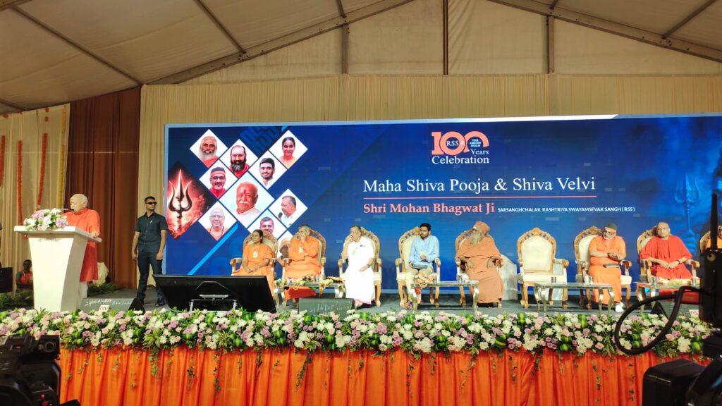 கோவை, பேரூர் ஆதீனத்தின் 24-ம் குரு மகா சந்நிதானம் சாந்தலிங்க இராமசாமி அடிகளார் மற்றும் ஆர்.எஸ்.எஸ் அமைப்பின் நூற்றாண்டு விழா நடை பெறுகிறது. பாரம்பரிய சிவவேள்வி பூஜையில் ஆர்.எஸ்.எஸ் அமைப்பின் தலைவர் மோகன் பகவத் கலந்து கொண்டு உள்ளார்.