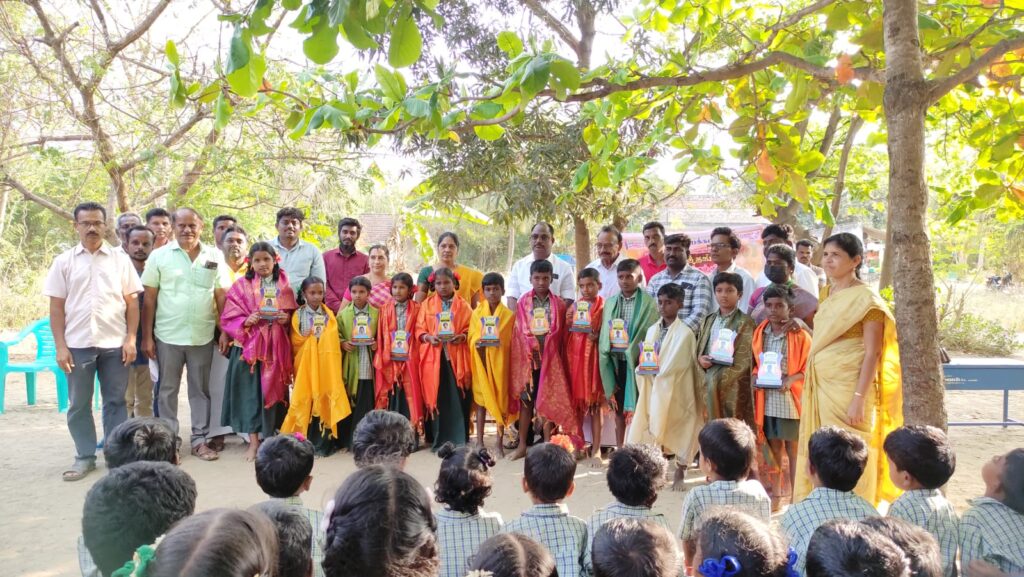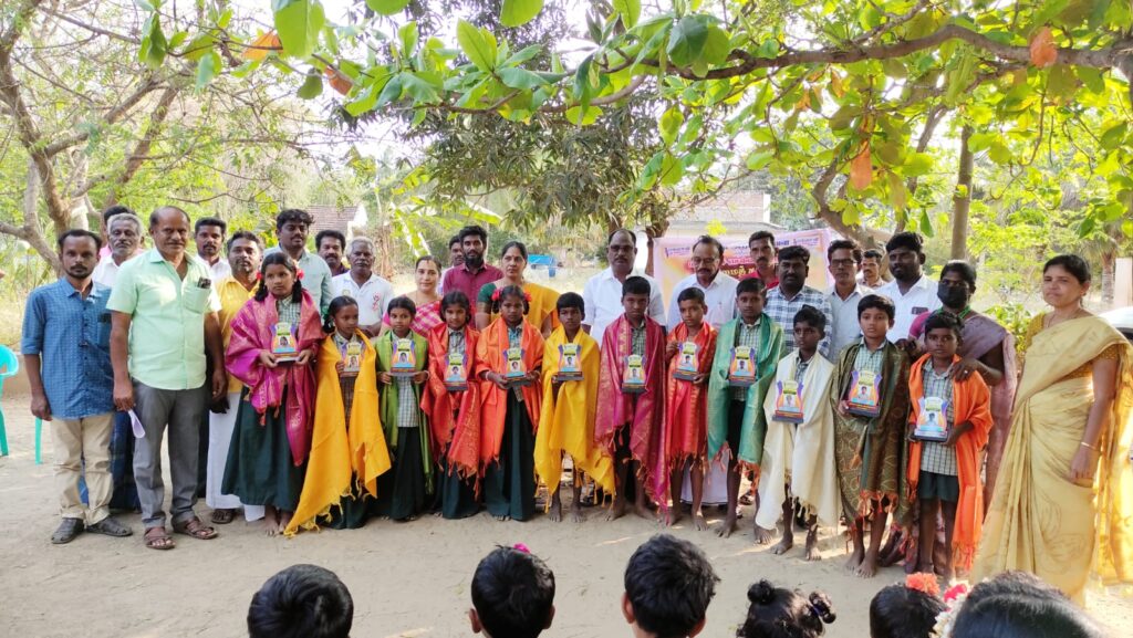 சென்ற ஆண்டு இதே பள்ளியில் பகவான் அறக்கட்டளை சார்பாக 73 பள்ளி மாணவர்களுக்கு மரக்கன்றுகளும் எழுது பொருளும் வழங்கப்பட்டது. இதில் சிறப்பாக மரம் வளர்த்த 12 மாணவ மாணவிகளை தேர்வு செய்து.பசுமை தங்கம். என்ற விருதை மாணவ மாணவிகளுக்கு வழங்கி பொன்னாடை போர்த்தி கௌரவ படுத்தப்பட்டார்கள். அதேபோல் இந்த ஆண்டும் 66 மாணவ மாணவிகளுக்கு மரக்கன்றுகளும் நோட்டு எழுதுகோலும் சேமிப்பு பழக்கத்தை உருவாக்கும் வண்ணம் உண்டியலும் அதில் நாணயங்களும் வழங்கப்பட்டது.