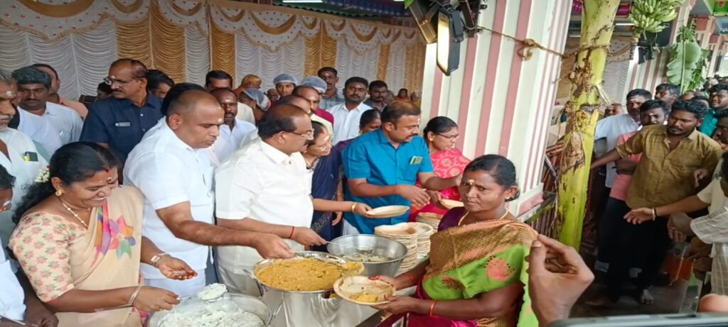 பழனி மலைக் கோயிலுக்கு வருகை புரியும் பக்தர்களுக்கு நாள் முழுவதும் பிரசாதம் வழங்கும் திட்டத்தை உணவு மற்றும் உணவுப்பொருள் வழங்கல் துறை அமைச்சர் சக்கரபாணி துவக்கி வைத்தார்.