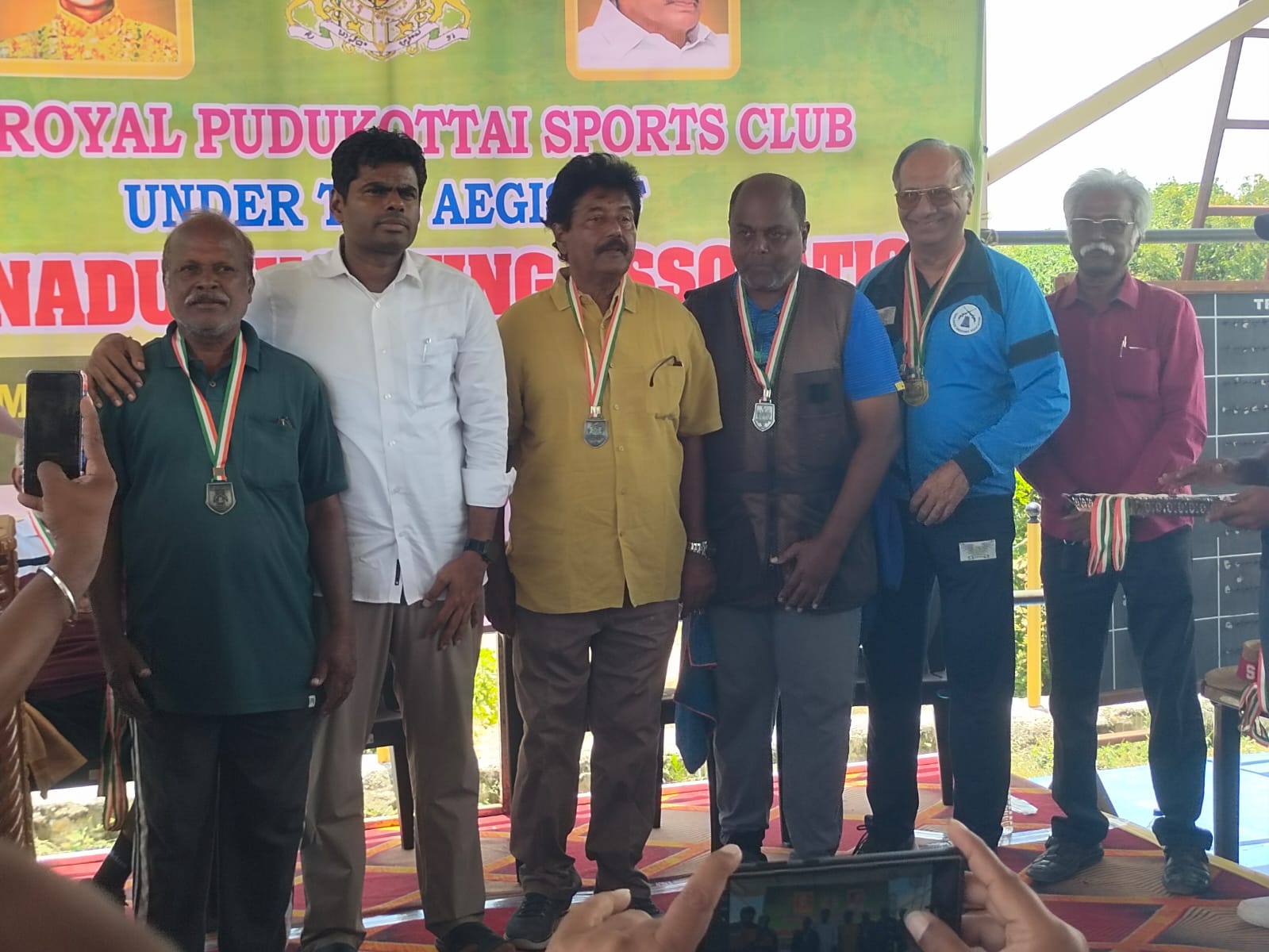 ராயல் புதுக்கோட்டை ஸ்போர்ட்ஸ் கிளப் தலைவர் ராஜா ராஜகோபால தொண்டைமான், செயலாளர் பிருத்வி ராஜ் தொண்டைமான், பொருளாளரும் திருச்சி முன்னாள் மேயர் சாரு பாலா தொண்டைமான், துணை பொருளாளர் ராதா நிரஞ்சனி, தமிழ்நாடு துப்பாக்கி சுடும் சங்க தலைவர் டிவிஎஸ் ராவ், செயலாளர் வேல் சங்கர், போட்டி இயக்குனர் ரவிகிருஷ்ணன் உள்ளிட்டோர் பங்கேற்றனர்.
