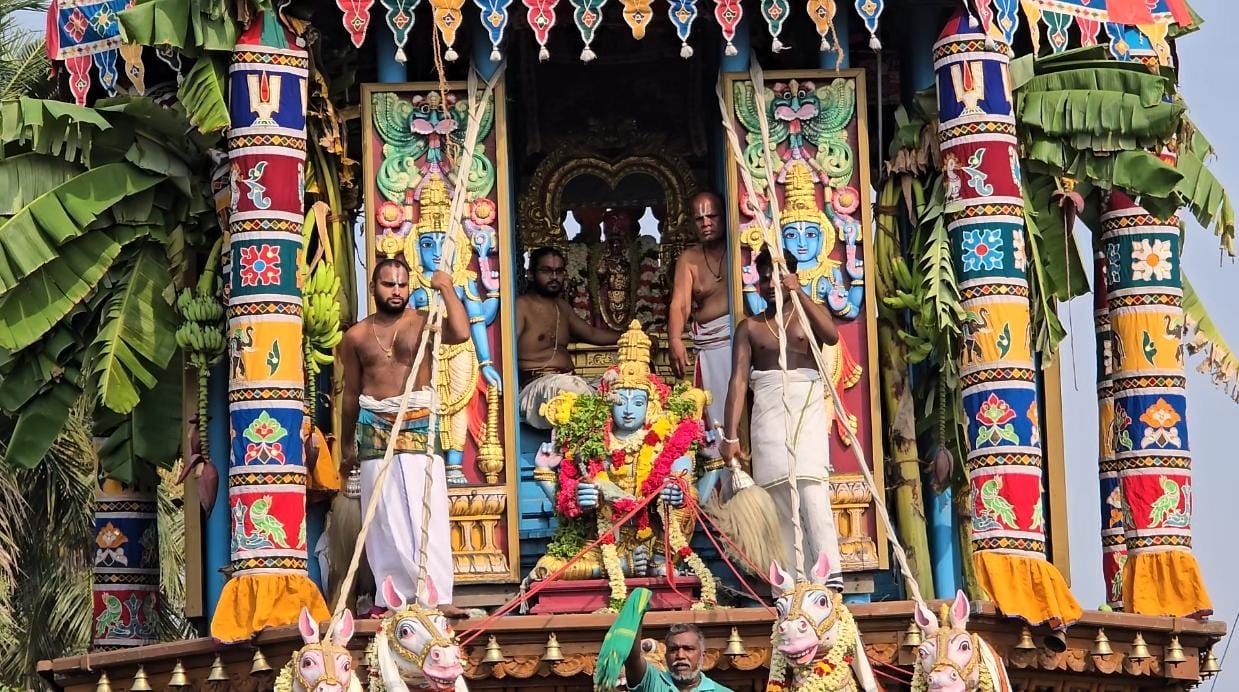 முக்கிய நிகழ்வான சித்திரை மாத தேரோட்டம் விழா சிறப்பாக நடைபெற்று வருகிறது. அதிகாலை கோயில் நடை திறக்கப்பட்டு, பெருமாள் மற்றும் தாயாருக்கு சிறப்பு அபிஷேகம், பூஜைகள் செய்யப்பட்டு, அலங்கரிக்கப்பட்ட தேரில் உற்சவர் பெருமாள் தாயாருடன் எழுந்தருளினார்.