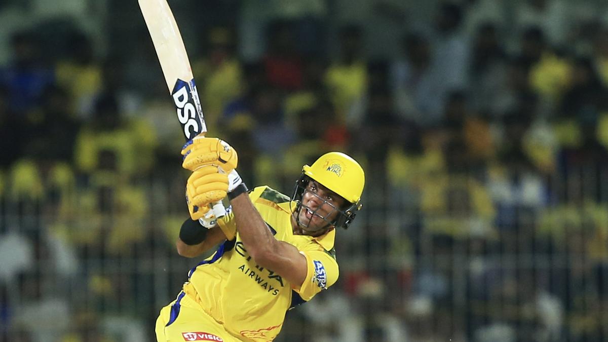 இதில் ராகுல் திரிபாதி 2 ரன்களில் வெளியேறினார். இவரைத் தொடர்ந்து சிறப்பாக ஆடி ரன்களைக் குவித்த ருதுராஜ் கெய்க்வாட் அரைசதம் அடித்த நிலையில் 53 ரன்களில் அவுட் ஆனார். பின்னர் களமிறங்கிய சிவம் துபே 9 ரன்களிலும், தீபக் ஹூடா 3 ரன்களிலும், சாம் கரன் 4 ரன்களிலும், ரவீந்திர ஜடேஜா 17 ரன்களிலும் அடுத்தடுத்து வெளியேறினர். ஆனால், மறுபக்கம் ரச்சின் ரவீந்திரா ரன்களைக் குவித்துக்கொண்டிருந்தார்.