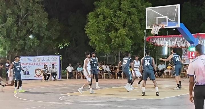 விருதுநகர் மாவட்டம் சிவகாசியில் நடைபெற்ற மாநில அளவிலான கூடைப்பந்தாட்ட போட்டியில் சென்னை அணி அபார வெற்றி பெற்றது. போட்டியை முன்னிட்டு கண்கவர் வானவேடிக்கை நிகழ்த்தப்பட்டது.