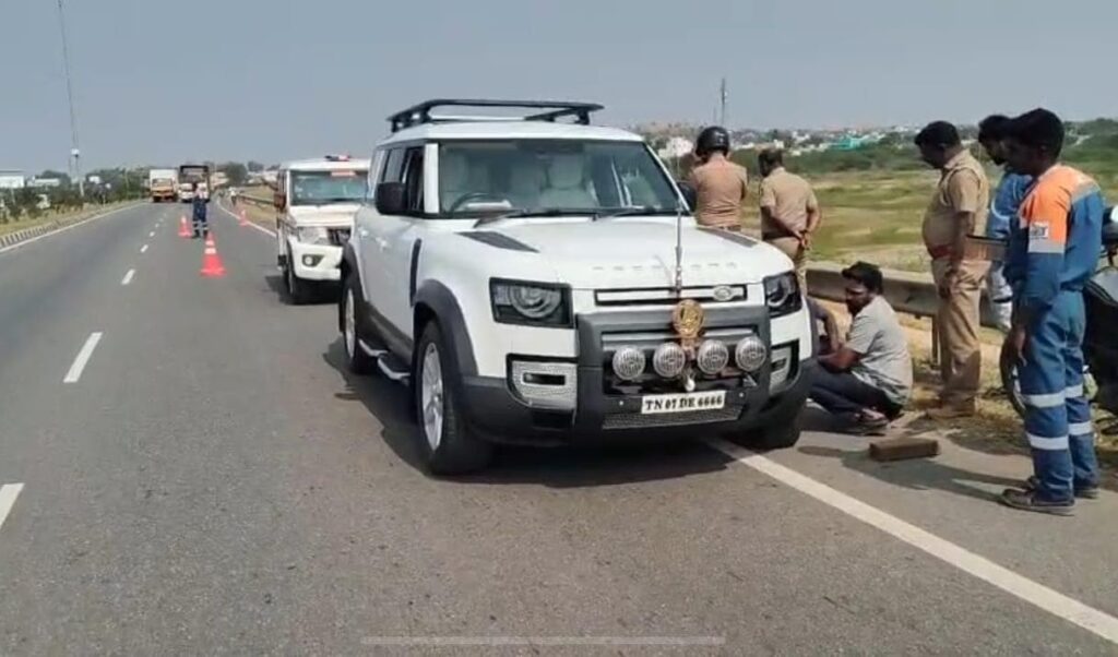 திண்டுக்கல்லில் நடைபெற்ற நிகழ்ச்சியை முடித்துவிட்டு தமிழக முதல்வர் மு க ஸ்டாலின் மதுரை விமான நிலையம் வரும் வழியில் சென்னை புறப்பட இருந்தது இதற்காக திண்டுக்கல்லில் இருந்து மதுரை திருப்பரங்குன்றம் வெங்கல மூர்த்தி நகர் நான்கு வழி சாலை நெடுஞ்சாலையில் வந்து கொண்டு இருந்தபோது திடீரென முதல்வரின் கார் டயர் வெடிப்பு ஏற்பட்டுள்ளது.