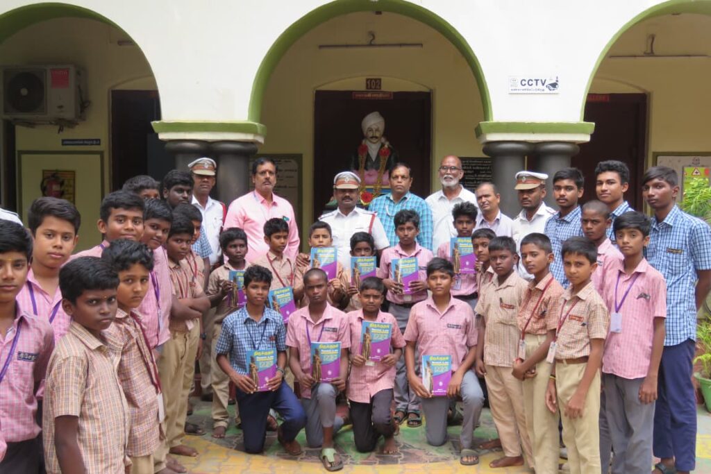 மதுரை மாநகர் காவல் துறையின் சார்பாக.. திலகர் திடல் போக்குவரத்து காவல் ஆய்வாளர் அ. தங்கமணி சிம்மக்கல் பகுதியில் அமைந்துள்ள மகாகவி பாரதியார் பணியாற்றிய பெருமை மிக்க சேதுபதி மேல்நிலைப்பள்ளியில் பள்ளியின் ஒவ்வொரு வகுப்பின் மாணவ பிரதிநிதிகளை அழைத்து குழந்தைகள் தின வாழ்த்துக்கள் தெரிவித்து அவர்களுக்கு இனிப்புகள், எழுதுகோல், திருக்குறள் புத்தகம் வழங்கியதோடு அவர்களிடம் விழிப்புணர்வுடன் தன்னம்பிக்கை வார்த்தைகளை எடுத்துக்கூறி இந்த நாளில் ஒழுக்க நெறிகளையும் சாலை விதிகளை கடை பிடித்தும்.. கல்வியில் மேம்பட்டு திகழ்ந்து பெற்றோருக்கும் பள்ளிக்கும், சமுதாயத்திற்கும் பெருமை சேர்க்கும் வகையில் மாணவ செல்வங்களின் செயல்பாடுகள் மேம்பட்ட வகையில் இருந்திட வேண்டி உறுதி மொழி மேற்கொண்டர்.
