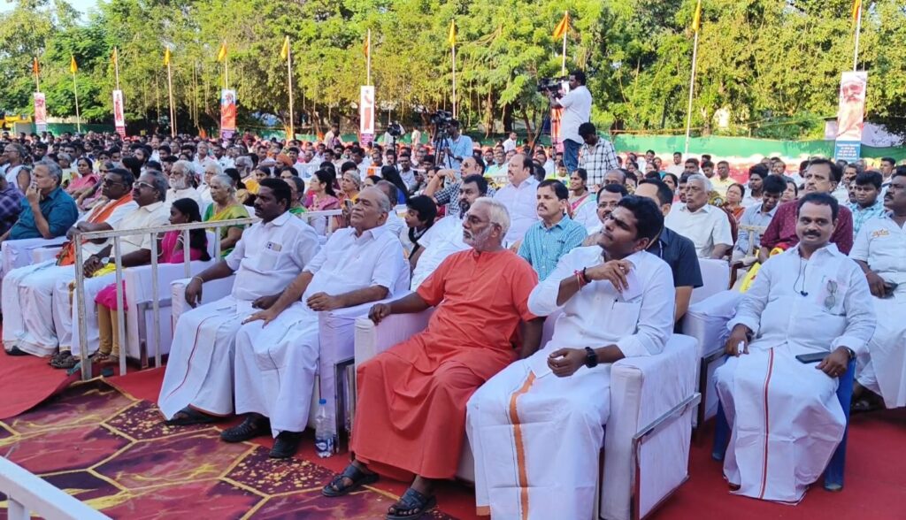 இந்துக்களாக இருப்போம் என்ற புத்தகத்தை சிறப்பு விருந்தினராக கலந்துகொண்ட பாஜகவின் முன்னாள் மாநிலத் தலைவர் அண்ணாமலை வெளியிட்டார்.